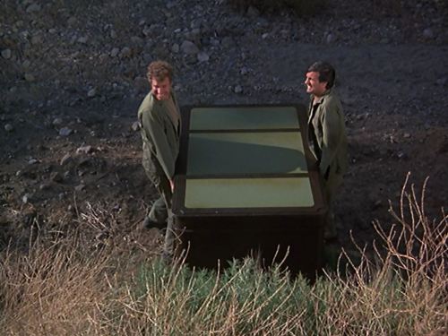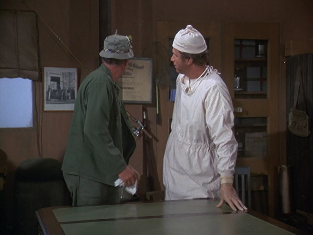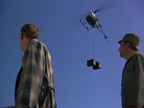 Radar wakes up Pierce and McIntyre at 0500 the next morning and they sneak out of the Swamp and into Henry’s office. Frank comes by to check on everything and meets up with Margaret. As they head off to the supply tent, Burns locks the door. While Radar goes out to try to convince the truck driver to wait for the desk, Pierce and McIntyre cut down a wall in Blake’s office and carry out the desk. Before they can get it on the truck, Burns recognizes the driver from the previous day and orders him to leave. When Hawkeye and Trapper catch up to Radar, he tells them that the truck left, so Hawkeye tells him to get O’Brien.Henry and Frank Burns go to Henry’s office and find that the desk is gone. They see it, attached to a helicopter, flying away.