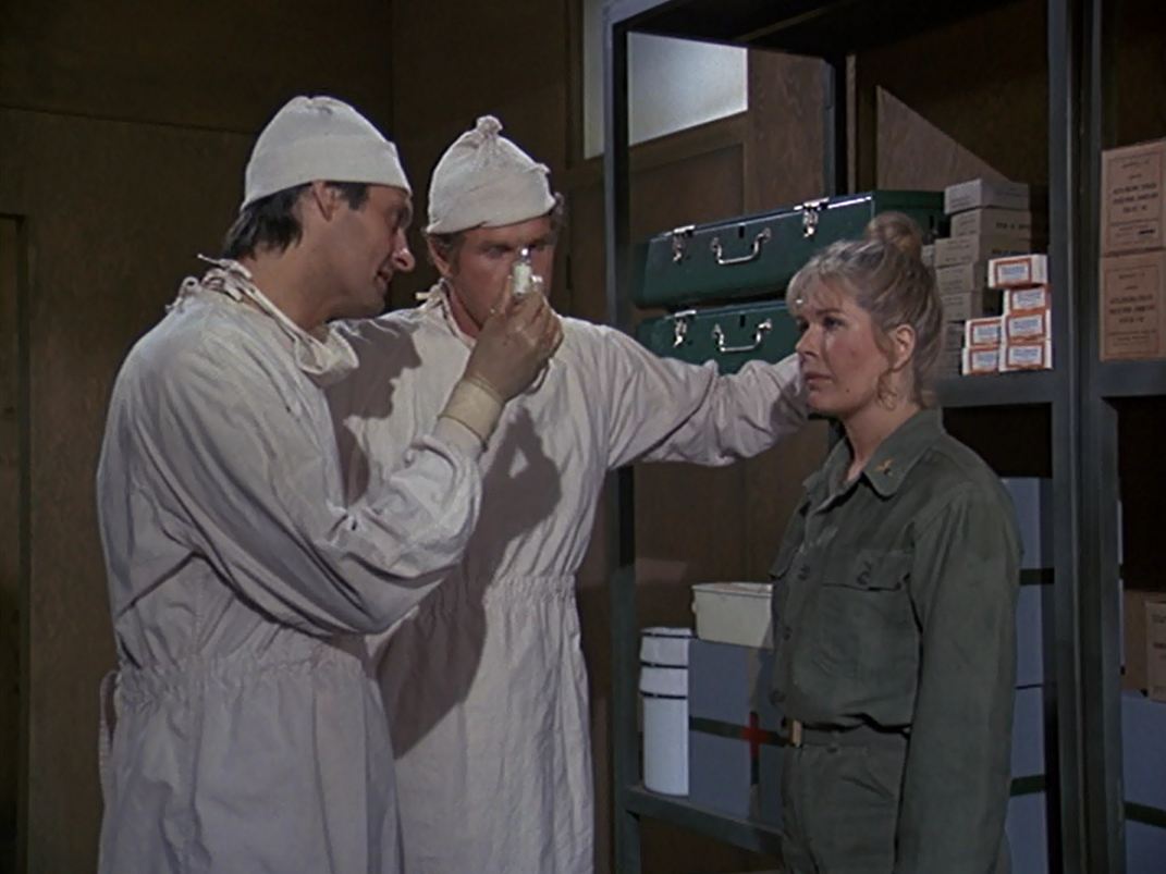 While operating on a general, Hawkeye discovers they are out of Hydrocortisone, so he and Trapper go to angrily complain to Major Houlihan. Major Burns comes to defend her, and explains that it, along with half of the other medical supplies, was hijacked by the black market. He also explains that a new shipment is waiting outside, but when they open up the truck, they discover it’s been stolen.