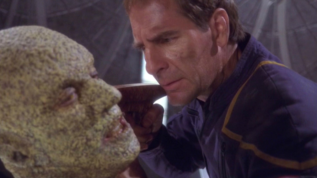 While Mayweather, Tucker and Read attempt to rescue three Denobulans from deep underground caverns, phlox finds himself with a patient who refuses to be treated by a Denobulan because of historical conflicts between their races.