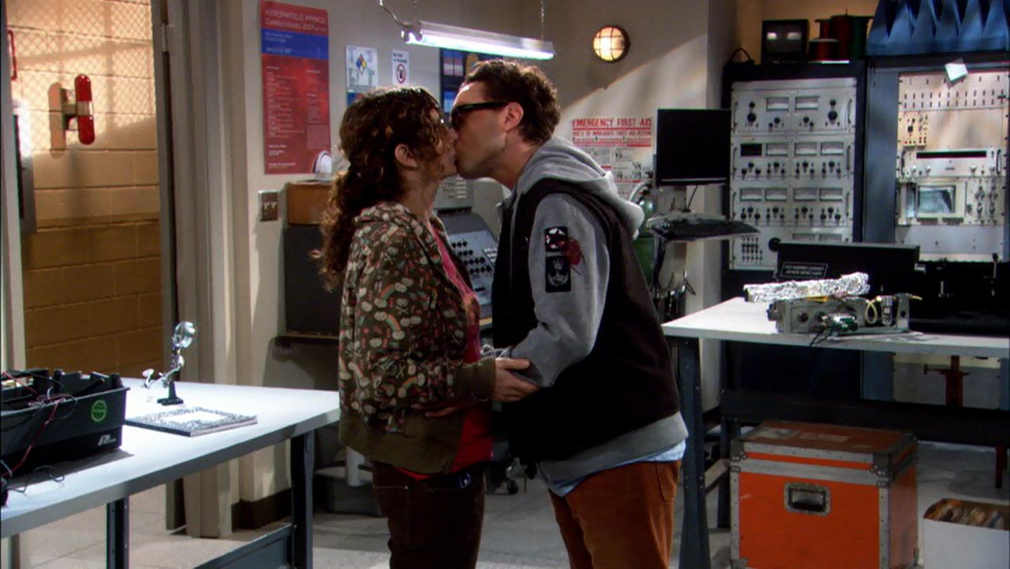 later, Leonard sees Penny kissing a guy in front of her apartment door, he is devastated thinking she has ‘rejected’ him. The guys convince him to ask someone out at work, but when he tries and is brutally turned down by a geeky girl scientist named Leslie Winkle, he is even more depressed.