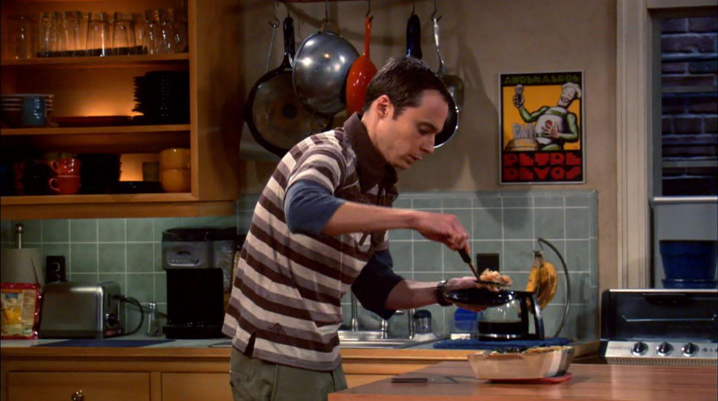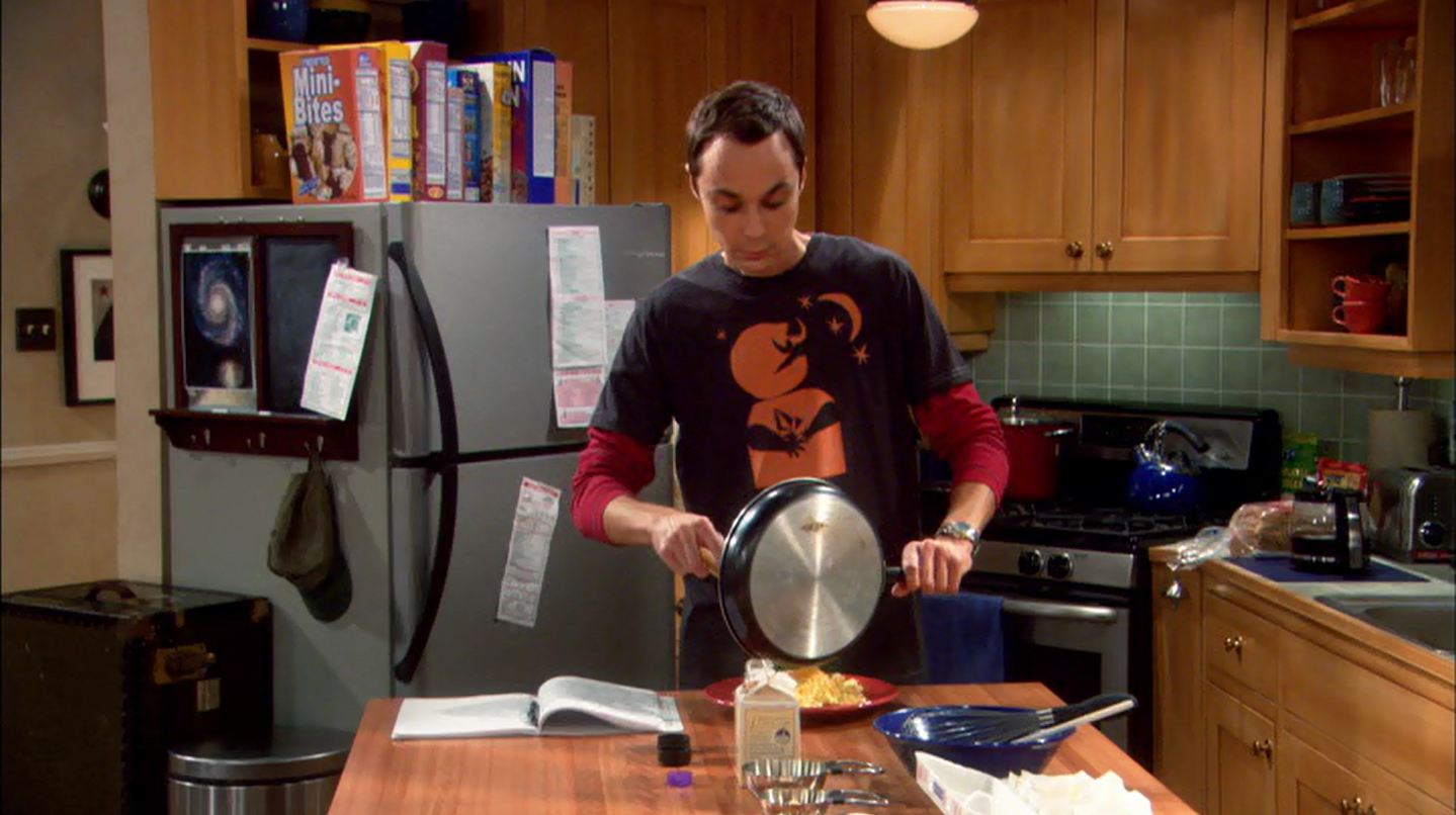 Back at the apartment, Leonard is confident that Sheldon will get his job back if he will just apologize to Mr. Gablehauser, but Sheldon refuses as he explains this is his first real day off in decades. He starts out by conducting experiments with scrambled eggs that don’t turn out to well since the eggs are not fresh.