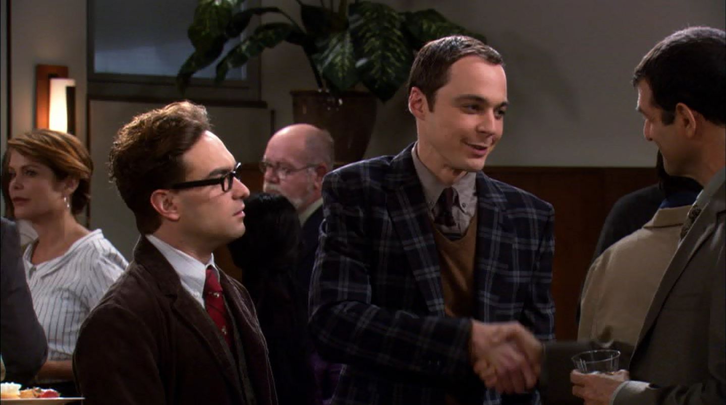 Leonard and Sheldon are attending a party to meet the new department head, Eric Gablehauser. Displeased with Gablehauser, because he has written a series of popular books about science dumbed down to an average bowel movement. Sheldon introduces himself to Dr. Gablehauser as “An actual real scientist”, Sheldon is fired.