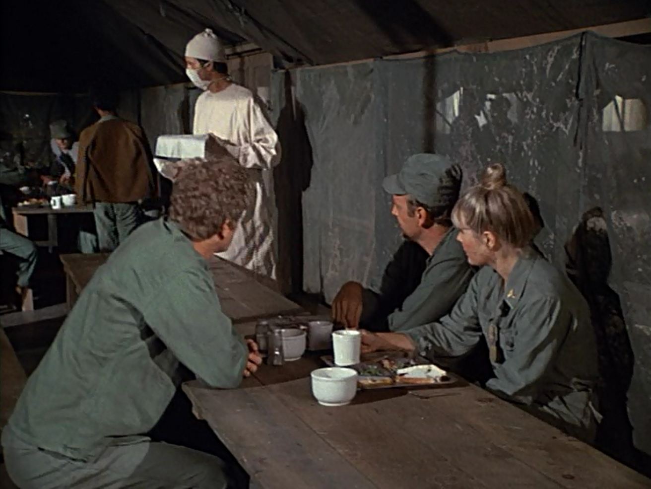 Hawkeye decides to pretend to be insane to try to get a few days off despite Frank’s prejudice. He rejects a proposition from an attractive nurse, eats a plate of ostensibly human liver from a North Korean, and reacts violently when Frank touches the plate. Trapper tells Frank that Hawkeye is losing it, and that he (Trapper) should take him to Tokyo for R&R.