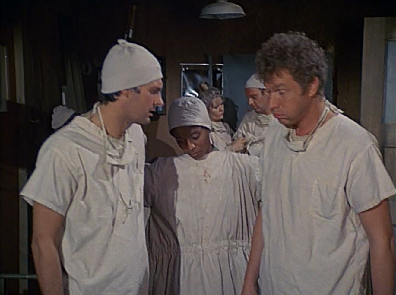 Henry returns, shocked to learn what’s been going on. Sherman wants Hawkeye to get actual psychiatric help, and Frank and Margaret start going along with it, figuring this is a chance to get rid of Hawkeye once and for all, referring to Pierce as “Poor Hawkeye–poor, sick Hawkeye.”