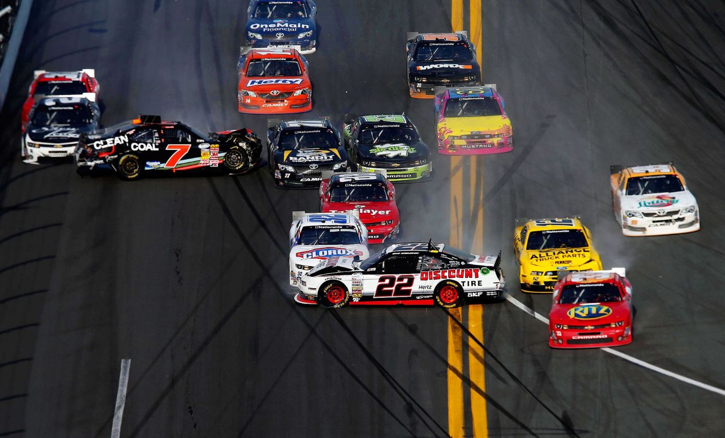 Regan Smith was leading the drafting pack when he moved to block Brad Keselowski, who bumped him. He checked up and the cars piled into the incident.