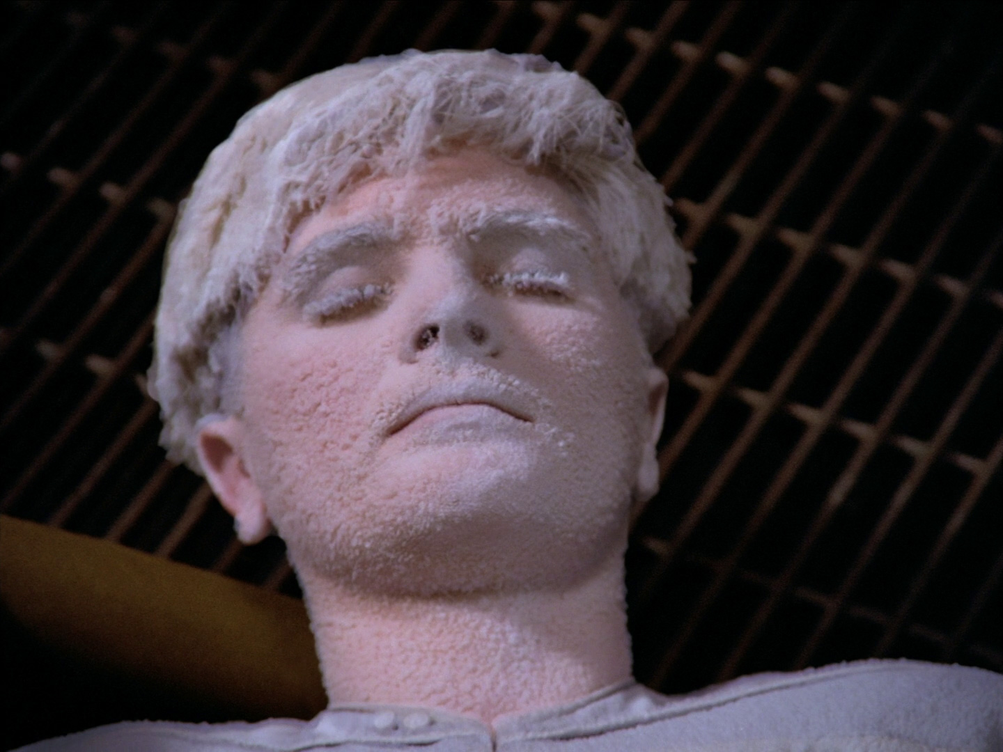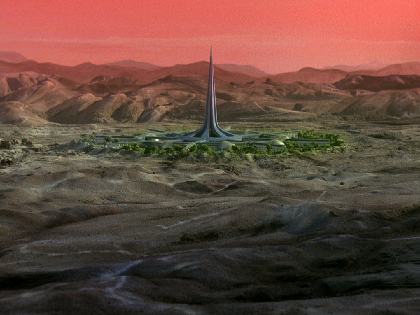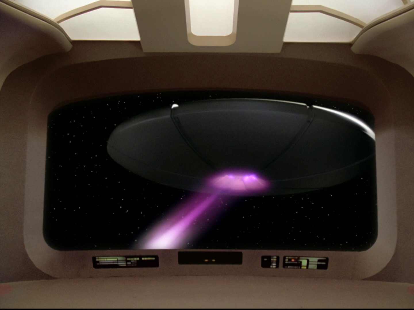 While the away team searches through tunnels beneath the Farpoint station, an unidentified ship begins firing on the old Bandi city, causing heavy damage and numerous casualties. As it turns out, the ship is a living alien being who is attacking the city because the people of Deneb IV have captured its mate.