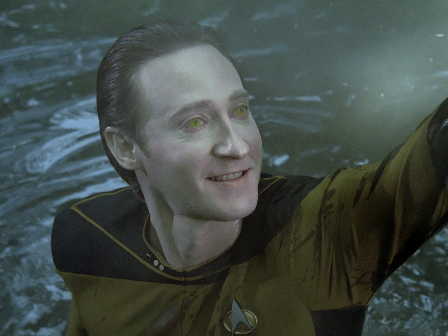 After assisting the reunion of the estranged aliens, the crew learns that it has passed Q’s test. Relieved, they head off for their next mission.