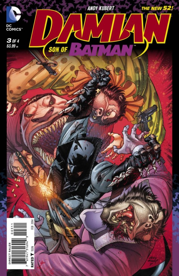 Damian Wayne has been bruised and beaten to a pulp…but nothing before will compare to his latest confrontation with the horde of villains in this issue. When pitted against Professor Pyg, and other baddies, how will Damian survive—especially when he finds a certain clown waiting for him at the finish line?
