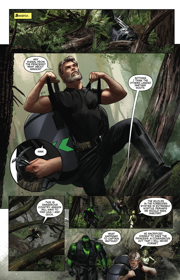But Princess Leia gets separated from the group, and when slavers capture her, Annikin Starkiller goes all Jedi on them!