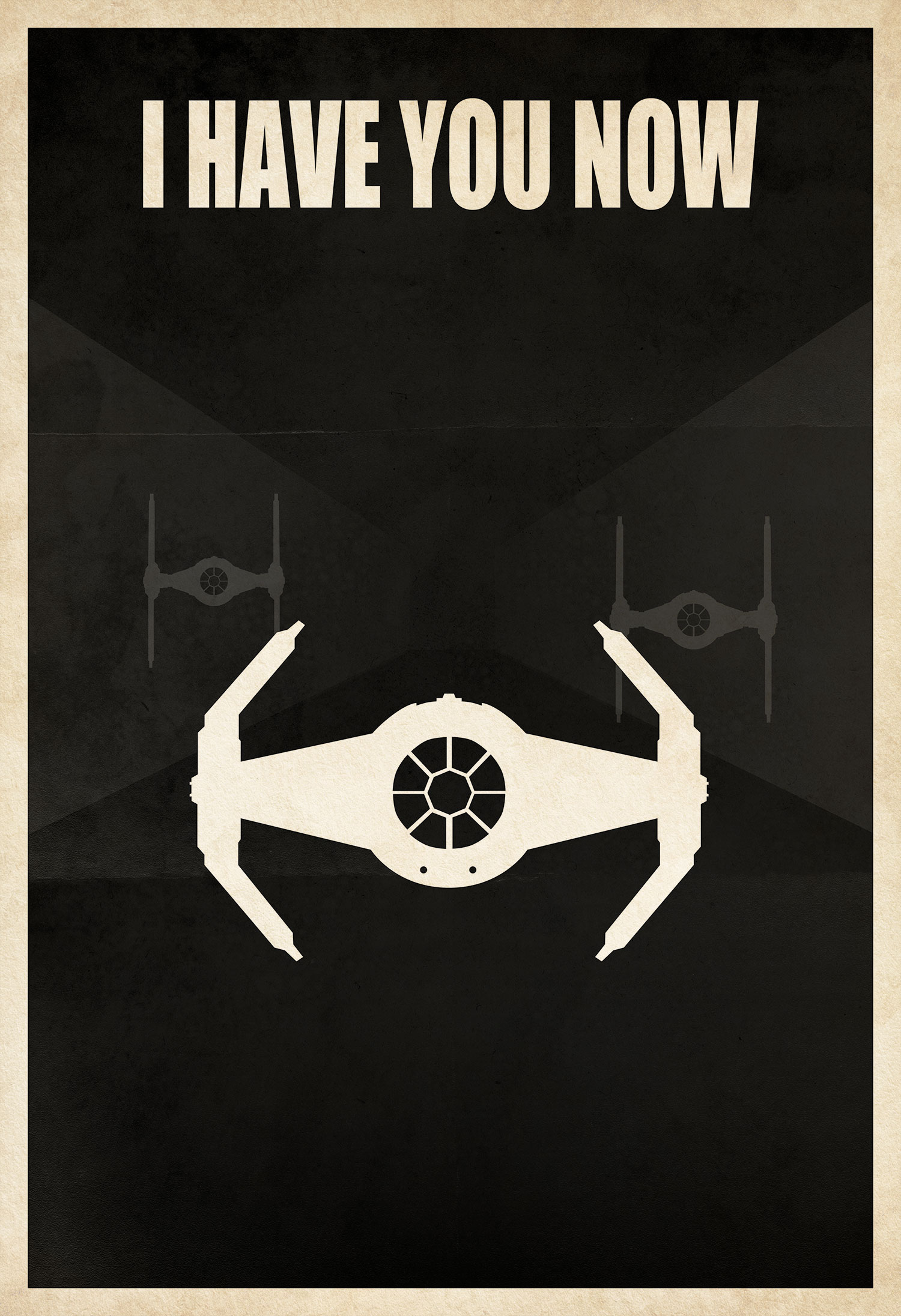 With just two or three words and usually one object as the focus of his Star Wars posters you know exactly what movie or scene from the Star Wars saga he is referring to.
