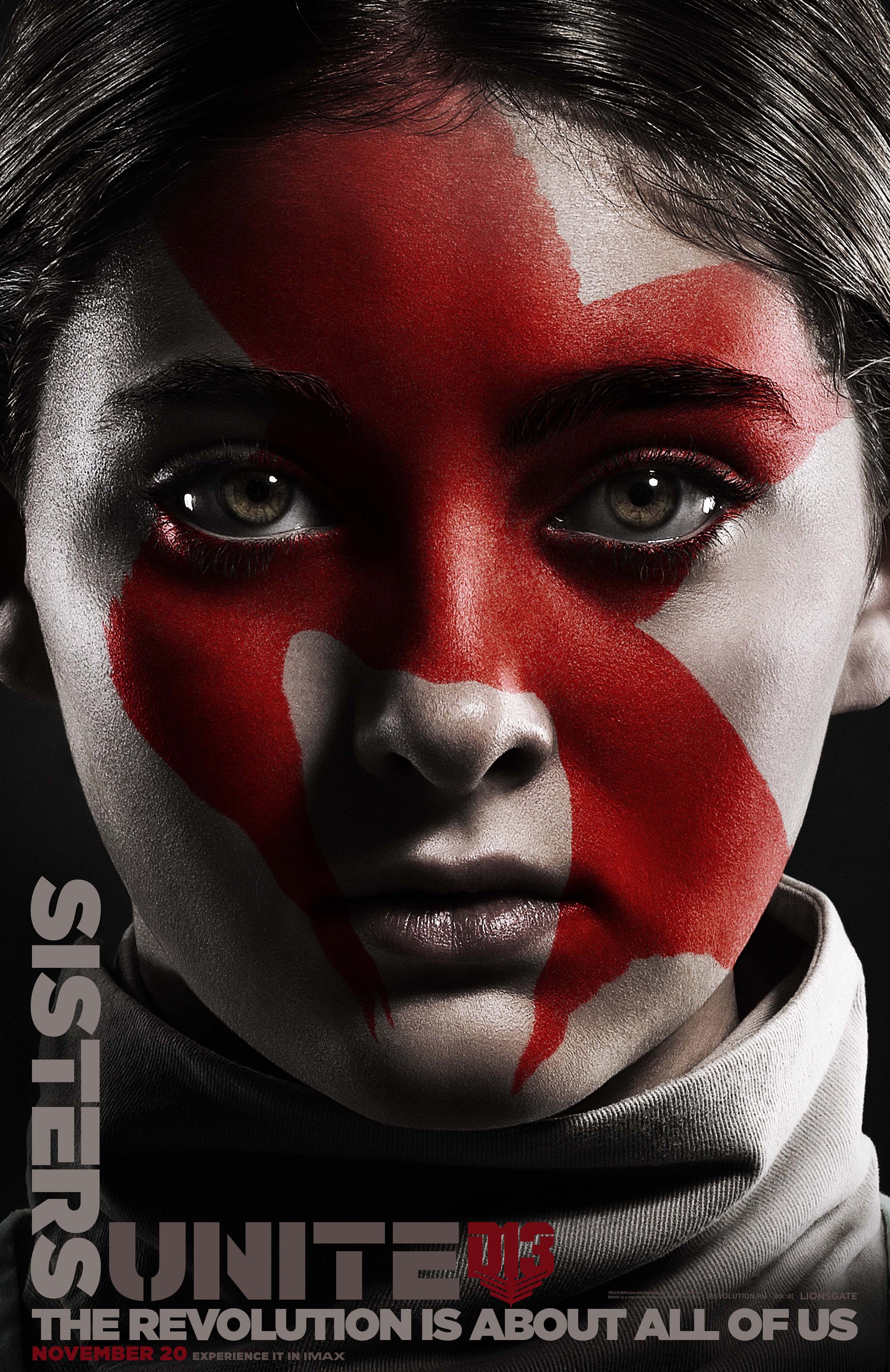 The Mockingjay symbol is painted across each of their faces in blood red the posters are simple but yet striking at the same time.