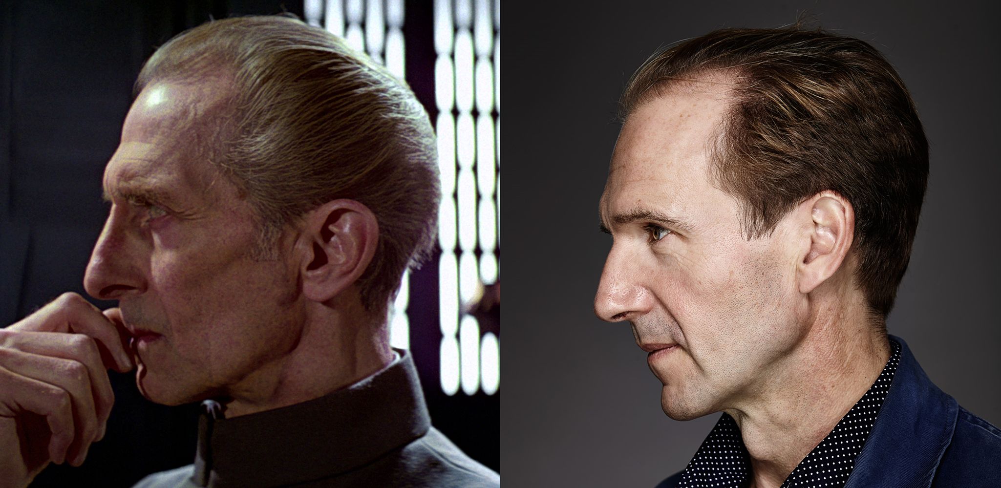 Take the picture above. On the left you have Peter Cushing, as “Tarkin” from “A New Hope” and on the right is an image of Ralph Fiennes. Pretty dam close in likeness, right?
