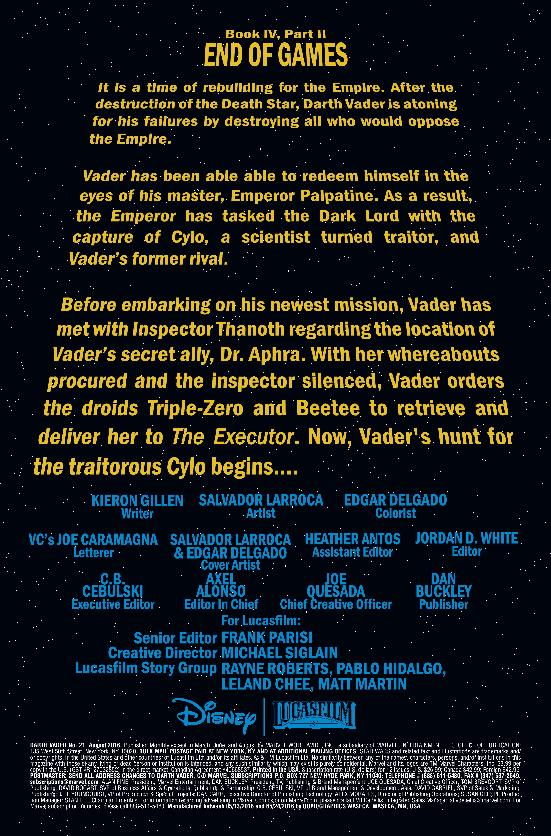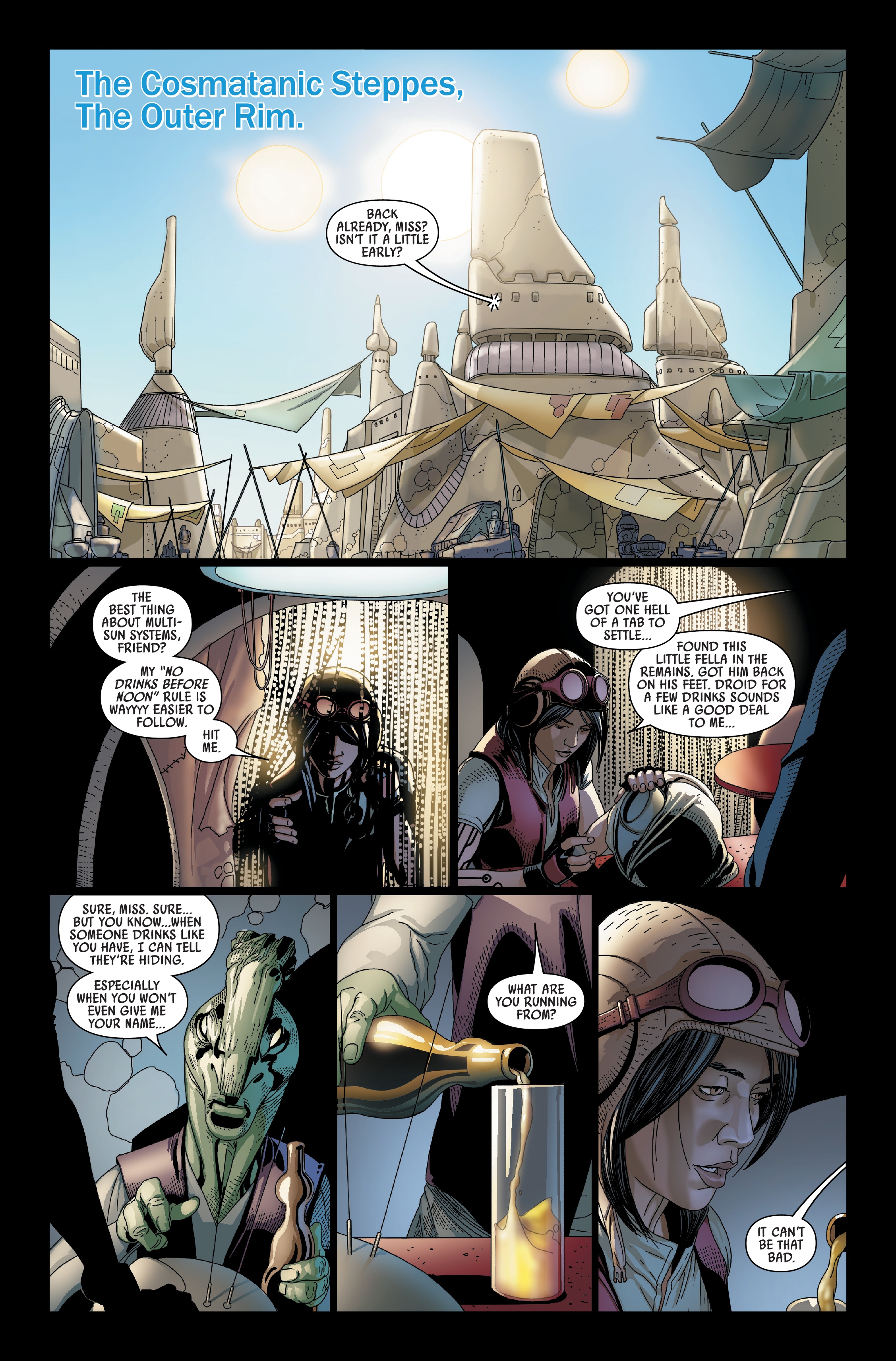 Before embarking on his newest mission, Vader has met with Inspector Thanoth regarding the location of Vader’s secret ally, Dr. Aphra. With her whereabouts procured and the inspector silenced, Vader orders the droids Triple-Zero and Beetee to retrieve and deliver her to The Executor. Now, Vader’s hunt for the traitorous Cylo begins.