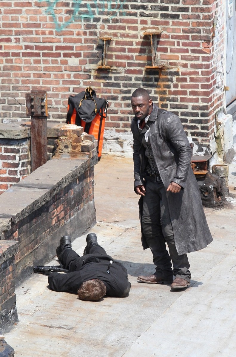 Idris Elba and Jackie Earle Haley were seen on the set of the upcoming movie The Dark Tower over the weekend while filming an action scene.