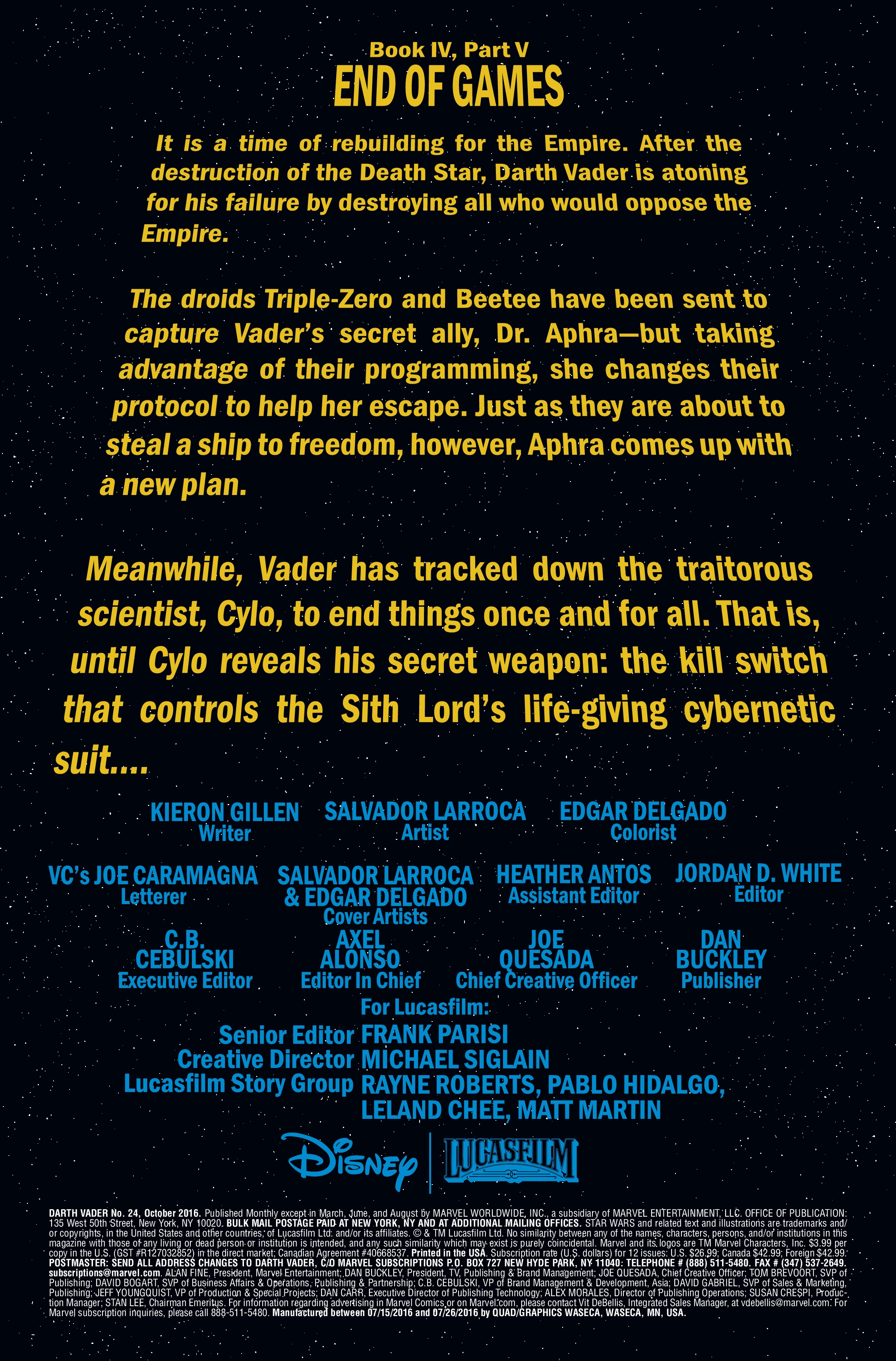 Meanwhile, Vader has tracked down the traitorous scientist, Cylo, to end things once and for all. That is, until Cylo reveals his secret weapon: the kill switch that controls the Sith Lord’s life-giving cybernetic suit.