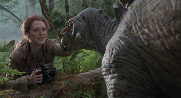 Hammond wants Ian to lead a team onto the island to document how the dinosaurs are thriving and surviving on their own to build support for protecting the animals, but when Ian discovers that his girlfriend Sara played by Julianne Moore has already gone to the island Ian reluctantly goes in order to bring her back safely.