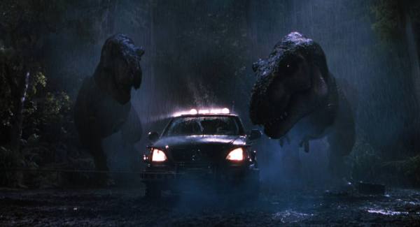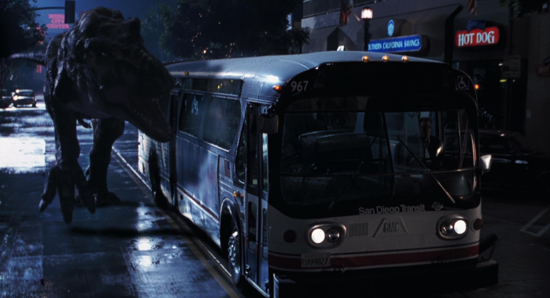 One of the biggest differences between Michael Crichton’s novel and Spielberg’s film is the final act with the T-Rex. If you’ve read the book then your fully aware that the entire story takes place on the island, but in the movie the final act takes place on the main land in the city of San Diego.