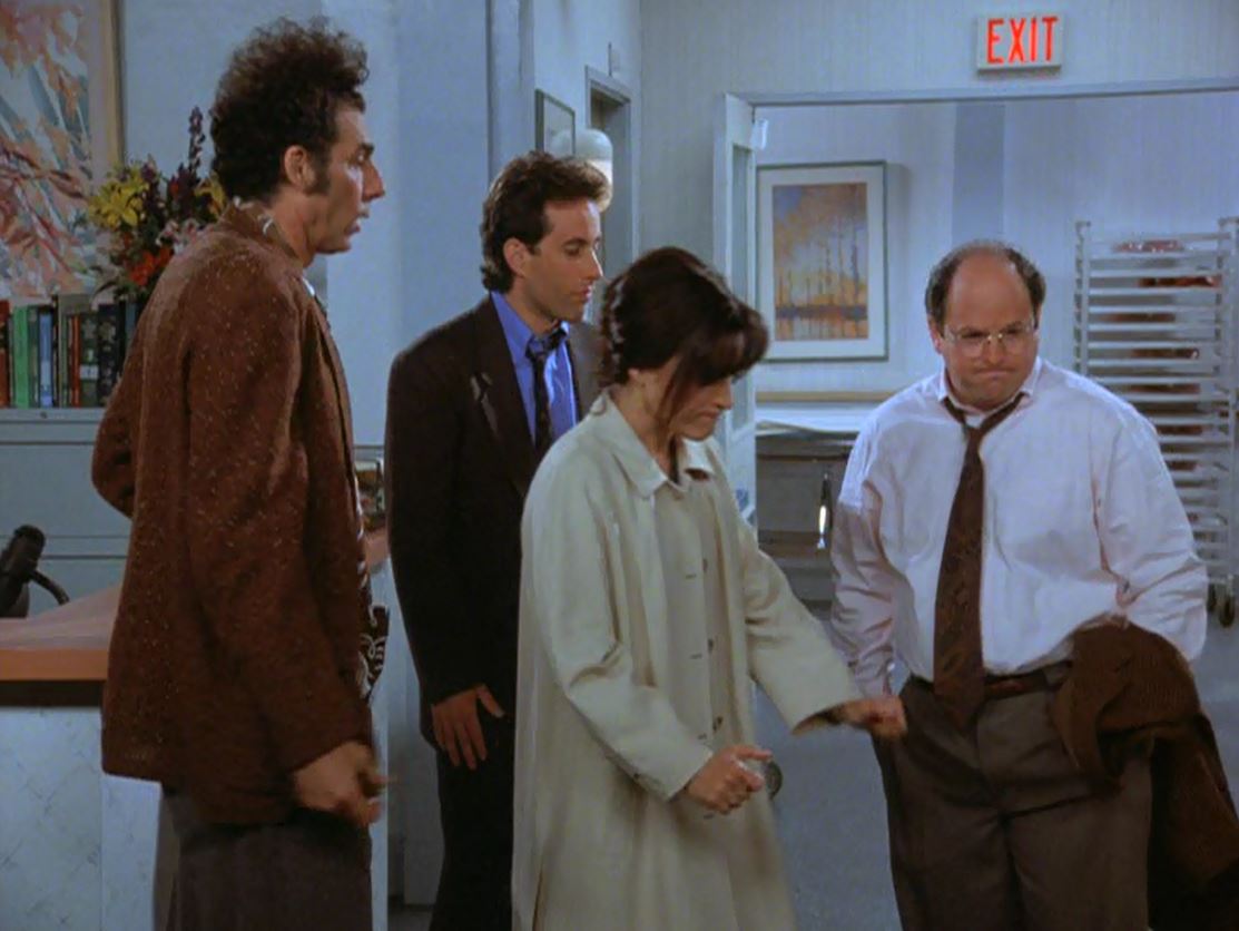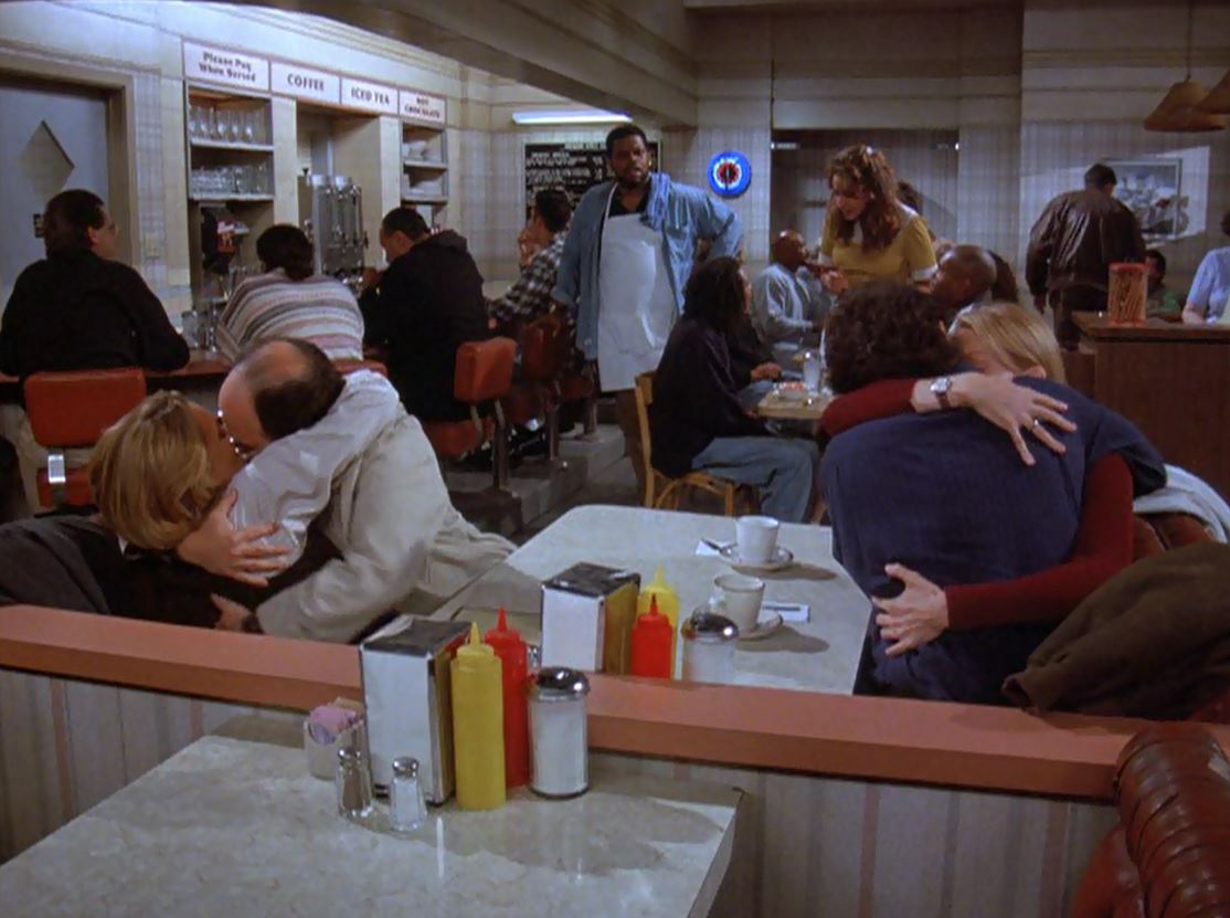 This is undoubtedly one of the more controversial episodes of the show. Larry David’s last episode as executive producer, he ends Season 7 on a depressing note that shows the characters’ nihilism in its ugly, shining glory. In classic Seinfeld fashion, George had been trying to get Susan to leave him ever since his and Jerry’s agreement was broken (THEY HAD A PACT). In an effort to save money, George buys the cheapest wedding envelopes he can, and the toxic glue ends of killing Susan. The gang is super not bummed, and decides to go for coffee. Oh, and in 2005, TV Guide named the episode #8 as part of its “Top 100 Most Unexpected Moments in TV History.”