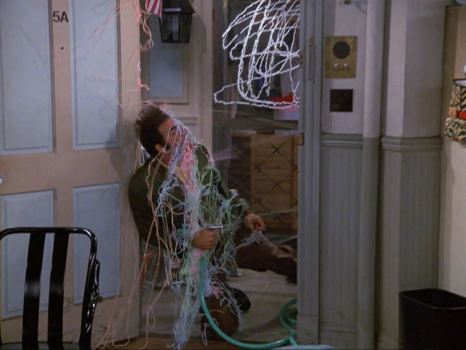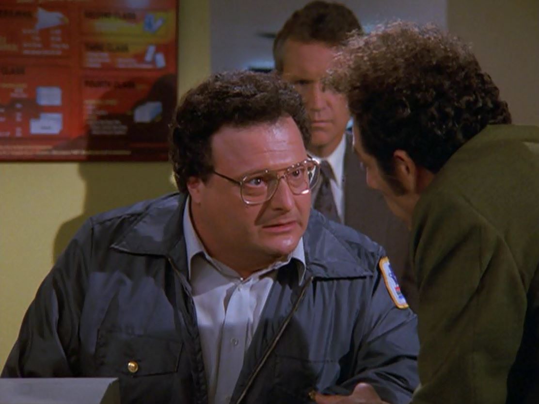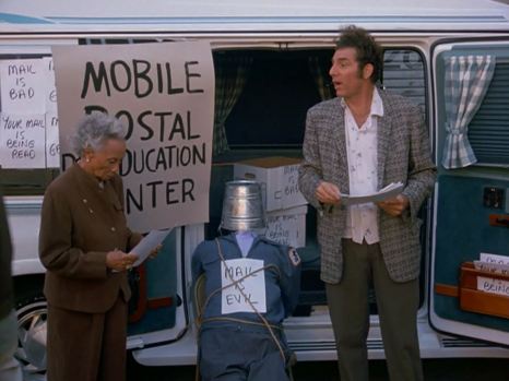 I feel for Kramer, I really do. I get way more junk mail that anything that’s actually relevant. I haven’t quite gone to the extreme of bricking up my post office box; after all, I don’t really feel like paying the repair fees. The true shining star of this episode is Wilford Brimley, who plays the postmaster general. It’s one of the strongest segments in the ninth and final season, showing the world how corrupt the U.S. Postal Service is. Hey, somebody just slipped something under my front door. …Well, I guess I have an appointment at the post office tomorrow. If I don’t return, tell the world my story.