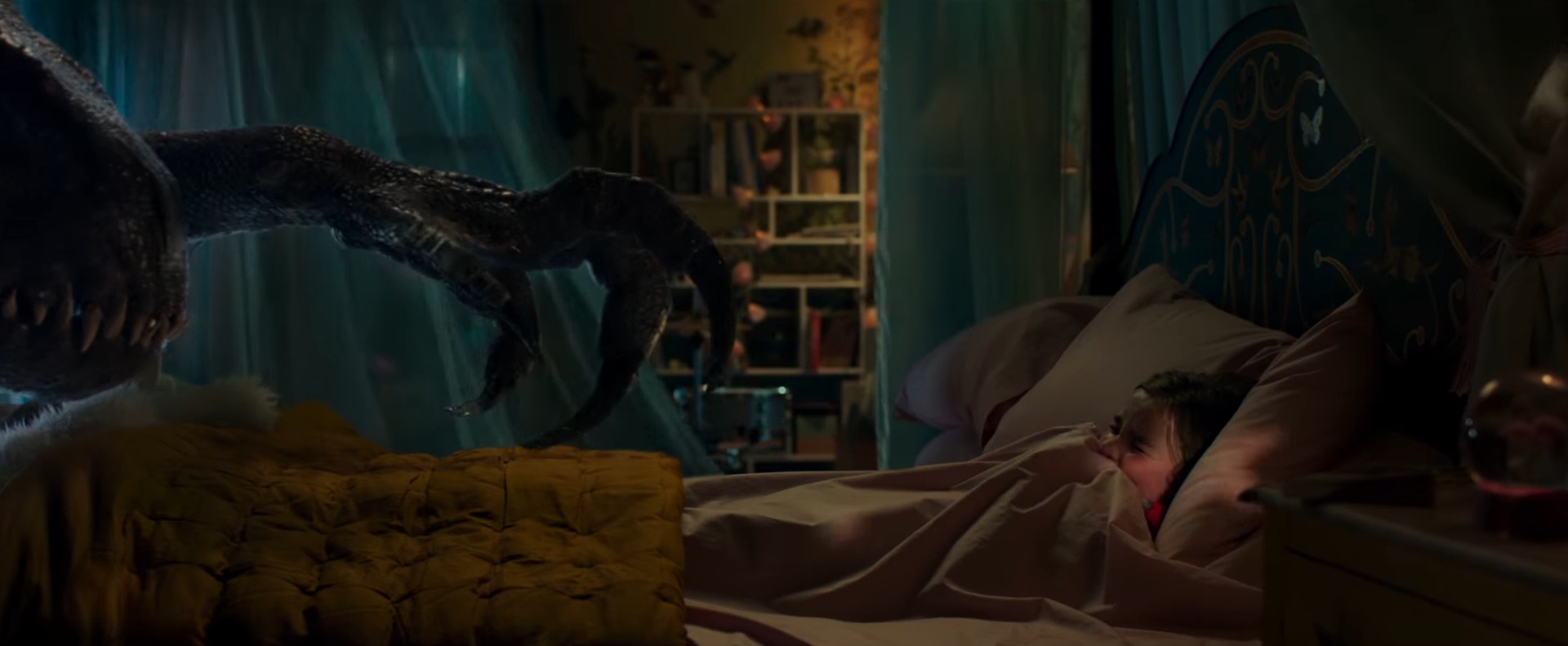 Much like when the first trailer was released the second one does not give anything away as far as what’s at the heart of this movie. We were introduced to a new breed of dinosaur that was obviously created sometime after Jurassic World that has escaped and is seen terrorizing a little girl in her bedroom.