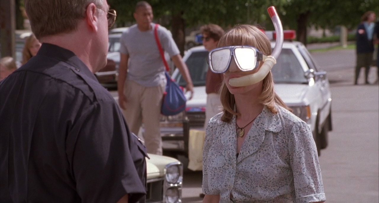 Being mentally ill, Joon goes about her normal routine, mostly ignoring Sam at first. He cleans the house in an oddball way to loud music and it freaks Joon out. So, she kicks him out. Doesn’t last long, I mean really, who could resist a young Johnny Depp? When Sam is back in the house and settled Benny gets Joon to bed. They share a tender sibling moment and we get a small glance into their past: two cars wrecked and smoking, 2 adult bodies on gurneys being covered. And a younger Benjamin and Juniper Pearl watching from the side as their parents are carted off.