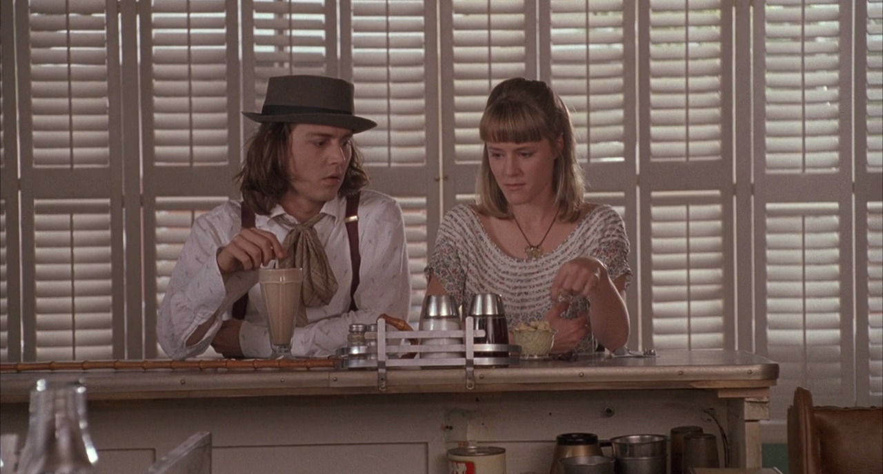 Benny doesn’t trust this outcast any farther than he could throw him, but they all go to dinner to a local diner. Sam gets two buns, sticks forks in each one and does a little dance with them, and this oddity happening doesn’t feel forced. It’s just how Sam is. Sam and Joon have this instant connection that can be felt through the screen and it is just so natural. Masterson and Depp have both played outcasts before and since and they are both at the top of they’re game in Hollywood at this point in they’re careers.