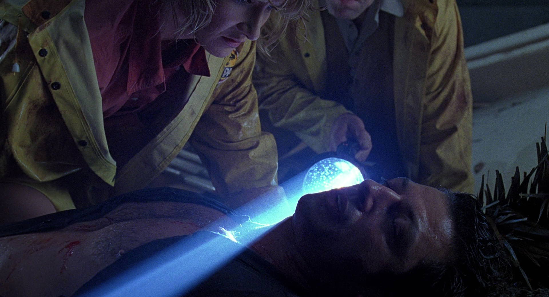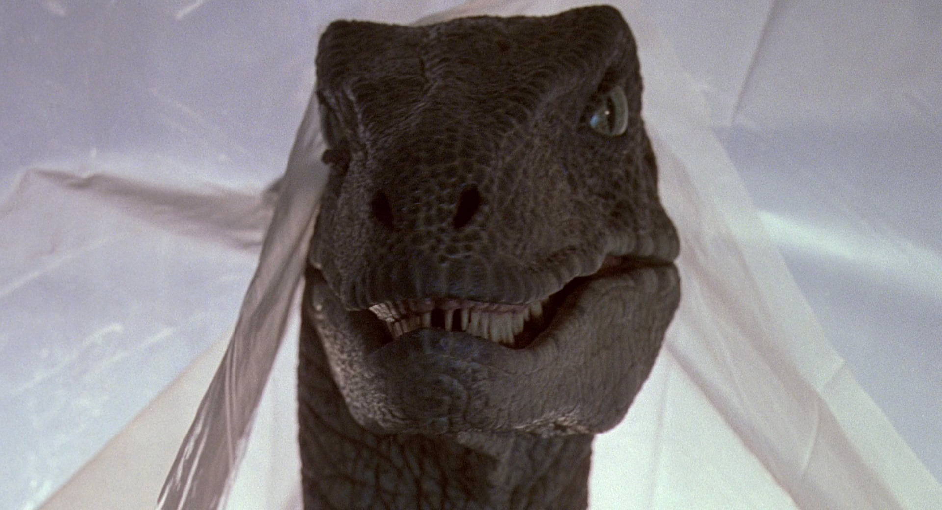When it comes to Jurassic Park, there is no denying that the true stars of this movie are the dinosaurs. When the movie starts we see a shot of the jungle and a huge crate being moved into position to release a dinosaur we can’t see into the park. It’s reminiscent of other Spielberg movies like Raiders of The Lost Ark, where he mystifies the audience before unleashing the action.