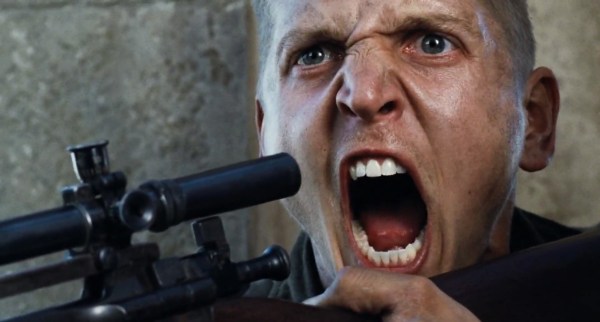 The battle sequences are, by far, the parts of the film that are most difficult to watch. The visual that always sticks with me is where the soldier goes looking for his arm, finds it, and nonchalantly carries it off. Of course, I could describe every brutal act of violence, but there are other less-safe-for-work websites for that kind of thing.