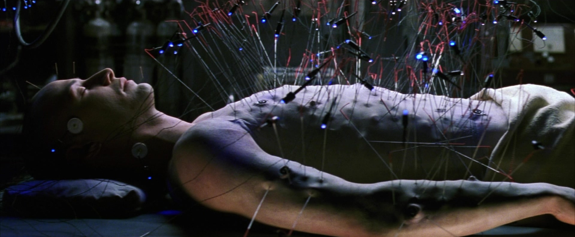 For me, the style of the film is the coolest part. The cyberpunk aesthetic of the real world is gritty, dirty, and disgusting. Everyone’s clothes are full of holes and falling apart, and the technology looks like it has been put together from parts found behind a RadioShack. It’s astounding that the rebels choose to live in this world rather than the comparatively clean and slick world of the matrix.