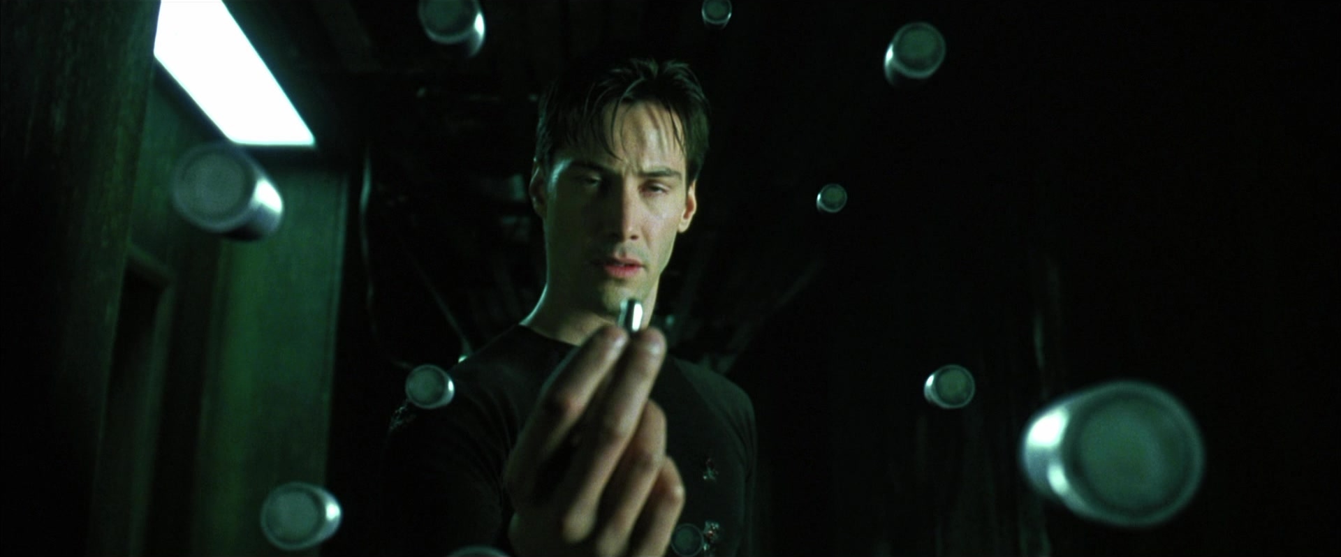 I can’t remember when I last saw The Matrix, but it’s been a number of years. I remember the black trench coats, Hugo Weaving’s disconcerting Agent Smith, and the bullet-time sequences, but the story beats were lost on me.