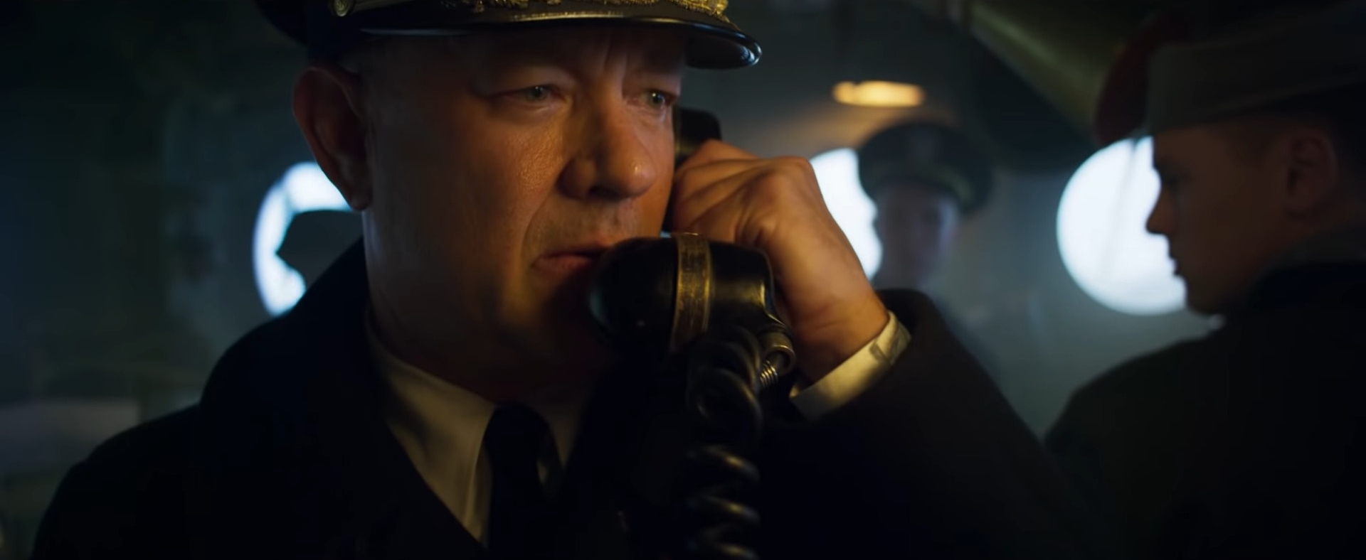 Tom Hanks who wrote and stars in Greyhound as Commander Ernest Krause, a US Navy Captain who must lead a convoy of Allied ships through Nazi U-boat-infested waters across the North Atlantic to the front lines.