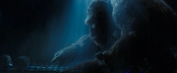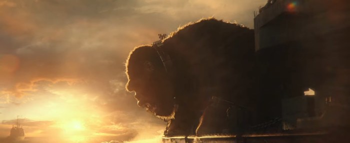 The trailer was released Sunday morning, on Warner Bros.’ YouTube channel as it gives fans their first look at the monstrous showdown between Godzilla and King Kong. The two titans exchange blows on an aircraft carrier that sees Kong knocking Godzilla back into the ocean as the epic battle for the ages begins.