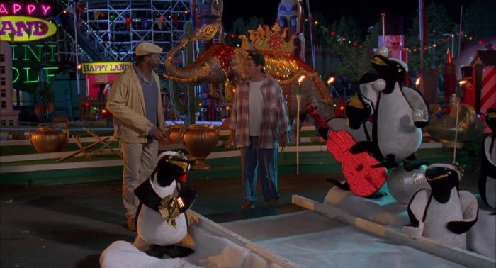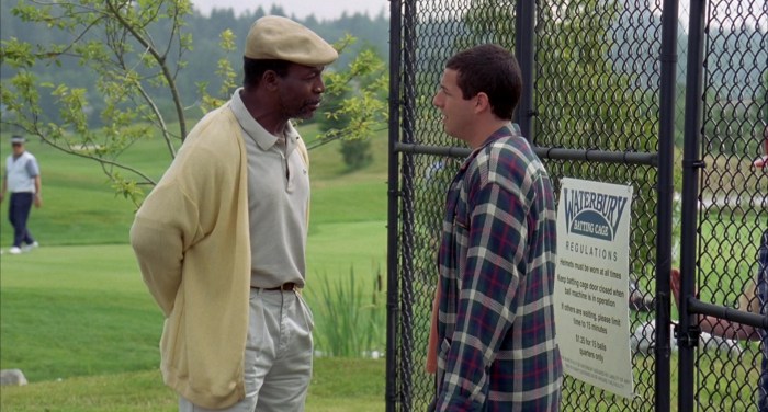 Gilmore is partnered with Bob Barker at a pro-am celebrity tournament and plays poorly because of a heckler hired by Shooter. Happy and Barker get into a fistfight and as a result gets suspended from the tour for a month. Happy needs help improving his short game and asks Chubbs for help who takes Happy to a miniature golf course.