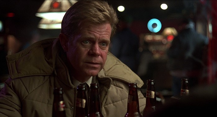 Jerry Lundegaard (William H. Macy), the sales manager of an Oldsmobile dealership in Minneapolis, is desperate for money. On the advice of dealership mechanic and parolee Shep Proudfoot, Jerry travels to Fargo, North Dakota and hires Carl Showalter (Steve Buscemi) and Gaear Grimsrud (Peter Stormare) to kidnap his wife Jean.