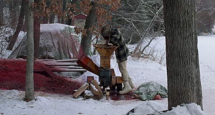 Marge goes to Moose Lake after hearing reports of a “funny-looking guy” bragging about killing someone. She sees Carl and Gaear’s car and discovers Gaear feeding Carl’s dismembered body into a woodchipper. When Gaear attempts to flee, Marge shoots him in the leg and arrests him. Shortly afterward, North Dakota police arrest Jerry at a motel outside Bismarck.