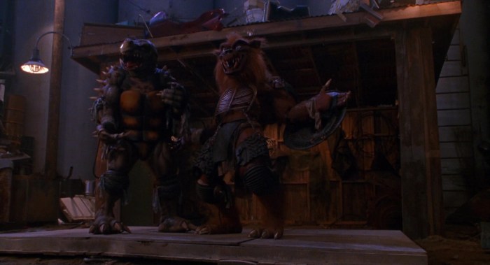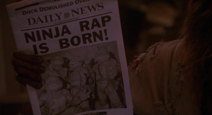 Jim Henson’s Creature Shop returned to do the movies animatronics and having a bigger budget were able to create costumes that were more mobile and better lifelike movements. “The Secret of the Ooze” was dedicated to the memory of Jim Henson, who had died the previous May. This was the first movie dedicated to Henson, the second being The Muppet Christmas Carol in 1992.