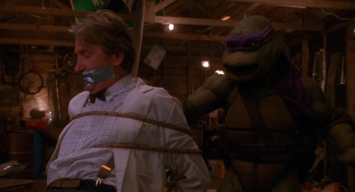 After the success of the first Turtles movie the studio moved quickly to ramp up production on the sequel and in doing so not everything worked out. Changes in actors were one of the casualties as a different actress was cast for the role of April O’Neil, with Paige Turco replacing Judith Hoag from the first film. Corey Feldman did not return to voice Donatello in the second movie after pleading no contest to a drug possession charge in December of 1990 and fans who were hoping to see the character of Bebop and Rocksteady had to settle for Rahzar and Tokka after Kevin Eastman and Peter Laird objected.