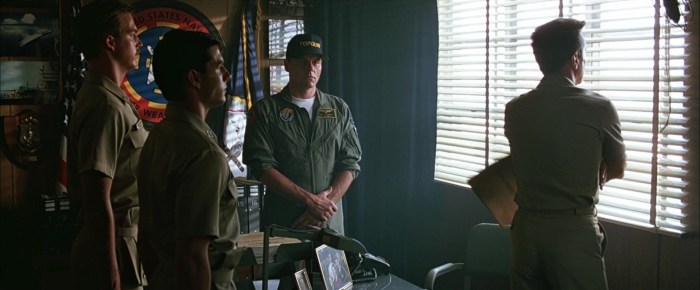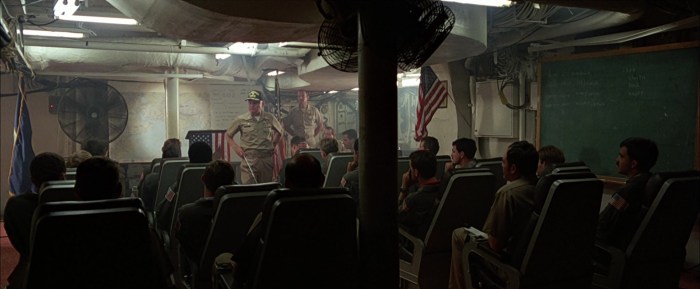 Several fighters from the F-14 fighter squadron VF-51 “Screaming Eagles” were made available for the film by the Navy. Paramount was responsible for the operating cost outside the aircraft’s normal duties while the aircraft carrier the USS Enterprise was used to film all the carrier sequences for the movie. The film crew had to take what they could get while on board the USS Enterprise as most shots were normal day to day aircraft operations.