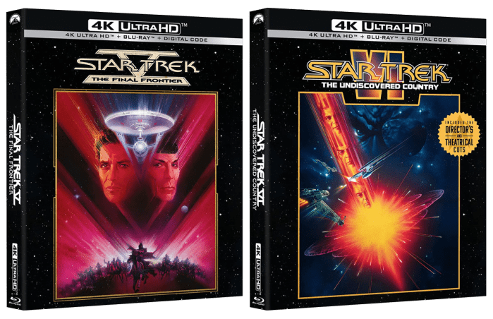 Star Trek V: The Final Frontier (1989) and Star Trek VI: The Undiscovered Country (1991) will also get their own standalone 4K releases. Both will be presented in 4K UHD with HDR-10 and Dolby Vision, boldly remastered from the original film elements; a Blu-ray disc containing the remastered presentation will also be included.