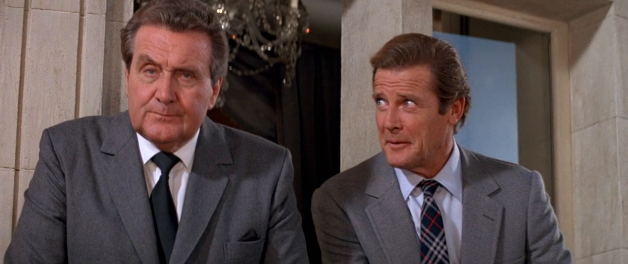 Patrick Macnee, who portrayed Sir Godfrey Tibbett, Bond’s ally and a horse trainer assisting in infiltrating Zorin’s chateau and stables was the fourth former star of “The Avengers” television series to appear in a Bond film, joining Honor Blackman, Diana Rigg, and Joanna Lumley.