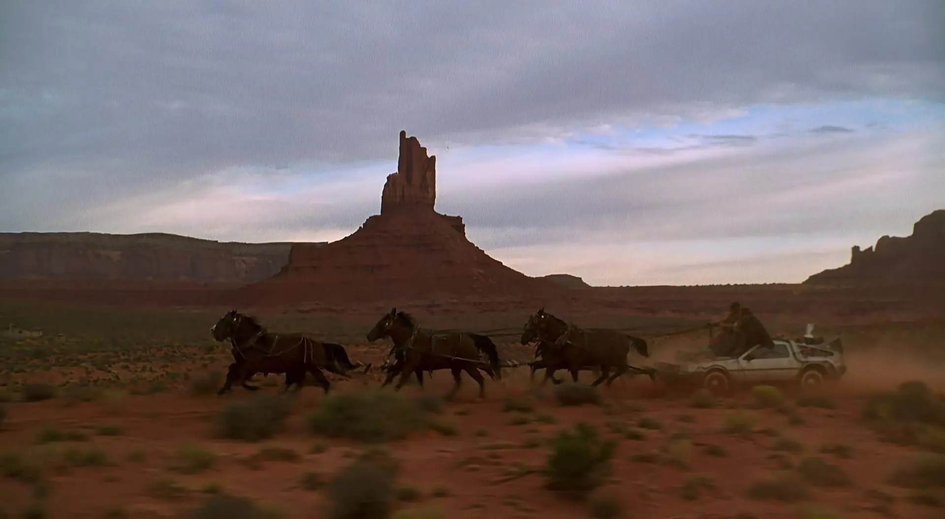 Not wanting to use existing sets for Back To The Future III, scenes for the movie were filmed at different locations this included Oak Park, California and Monument Valley, the 1885 Hill Valley was done in Jamestown, California, a purpose-built set at the Red Hills Ranch near Sonora, California while some of the scenes for the train were filmed at Railtown 1897 State Historic Park.