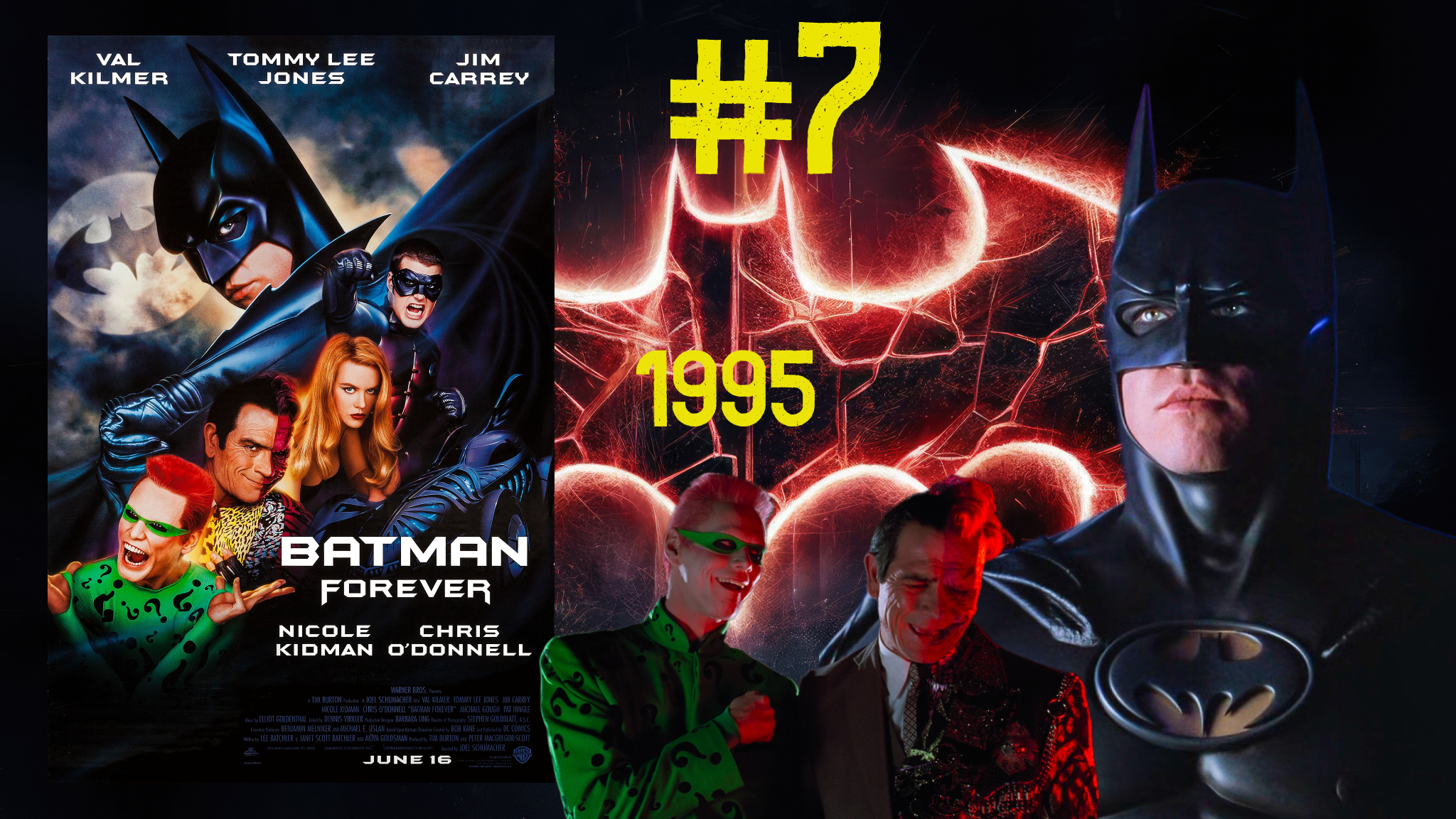Batman Forever (1995) saw director Joel Schumacher take over from Tim Burton, shifting the franchise from Burton’s dark tone to a more vibrant one. Val Kilmer’s portrayal of Bruce Wayne / Batman was a grounded portrayal. The movie saw the introduction of Robin, played by Chris O’Donnell as Dick Grayson who was seeking justice for his family being murdered. But it was Jim Carrey who obviously stole the show with his performance as the Riddler, whose performance was reminiscent of the 1960s TV show’. Carrey’s performance, alongside Tommy Lee Jones’s Two-Face, often overshadowed Kilmer as Batman and the film’s overall plot. While it saw success at the box office, the movie’s visual style and mixed tone make it a divisive but memorable installment in the franchise.